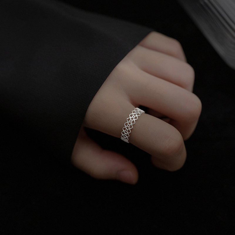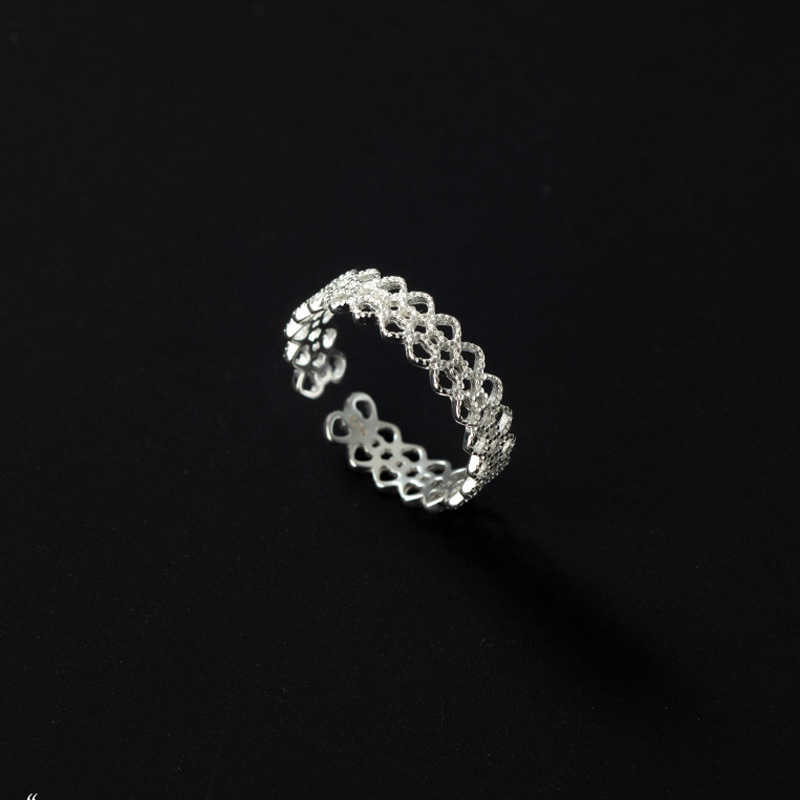 S925 Sterling Silver Lace Edge Ring for Women, Elegant & Premium Niche Design, Hollow Heart Open Index Finger Ring, Trendy